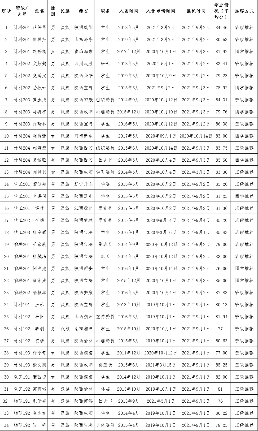 为进一步增强共青团的吸引力和凝聚力,激励广大团员青年在学习、工作、生活中发挥模范作用,推荐优秀团员青年作为入党积极分子人选,根据《共青团必一运动公司委员会推荐优秀团员作为党的发展对象工作条例》要求,必一运动团总支严格按照推优程序,民主选举,共计34名同学顺利推优,现将名单予以公示。