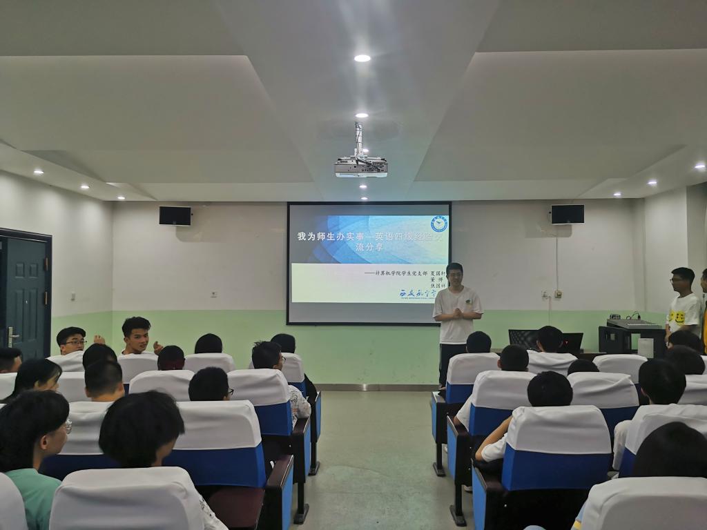 本次活动邀请了员工党员夏国轩、董博,员工代表焦国祥三位学长,他们英语四级成绩均以500分以上的高分通过,交流会上,三位学长分别从英语四级考试流程、题型、答题技巧、词汇记忆方法等方面进行了经验分享和交流,并现场解答了大家的问题。