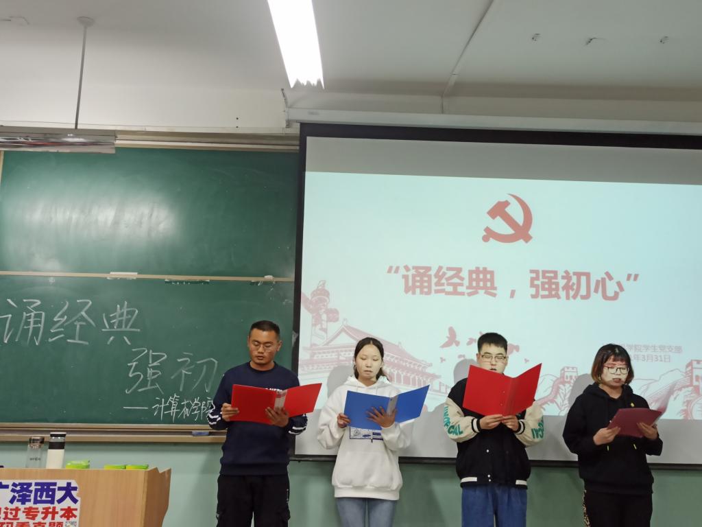 为引导员工党员知史爱国,知史爱党,知史奋进,筑牢红色思想基石、传承四史精神,推动“四史”学习落地落实,3月31日晚,公司员工第一党支部和第二党支部于沣惠校区教学主楼308联合举办“诵经典,强初心”主题演讲比赛,员工第一党支部书记侯勇、员工第二党支部书记王靖晶以及两个支部党员、积极分子参加。