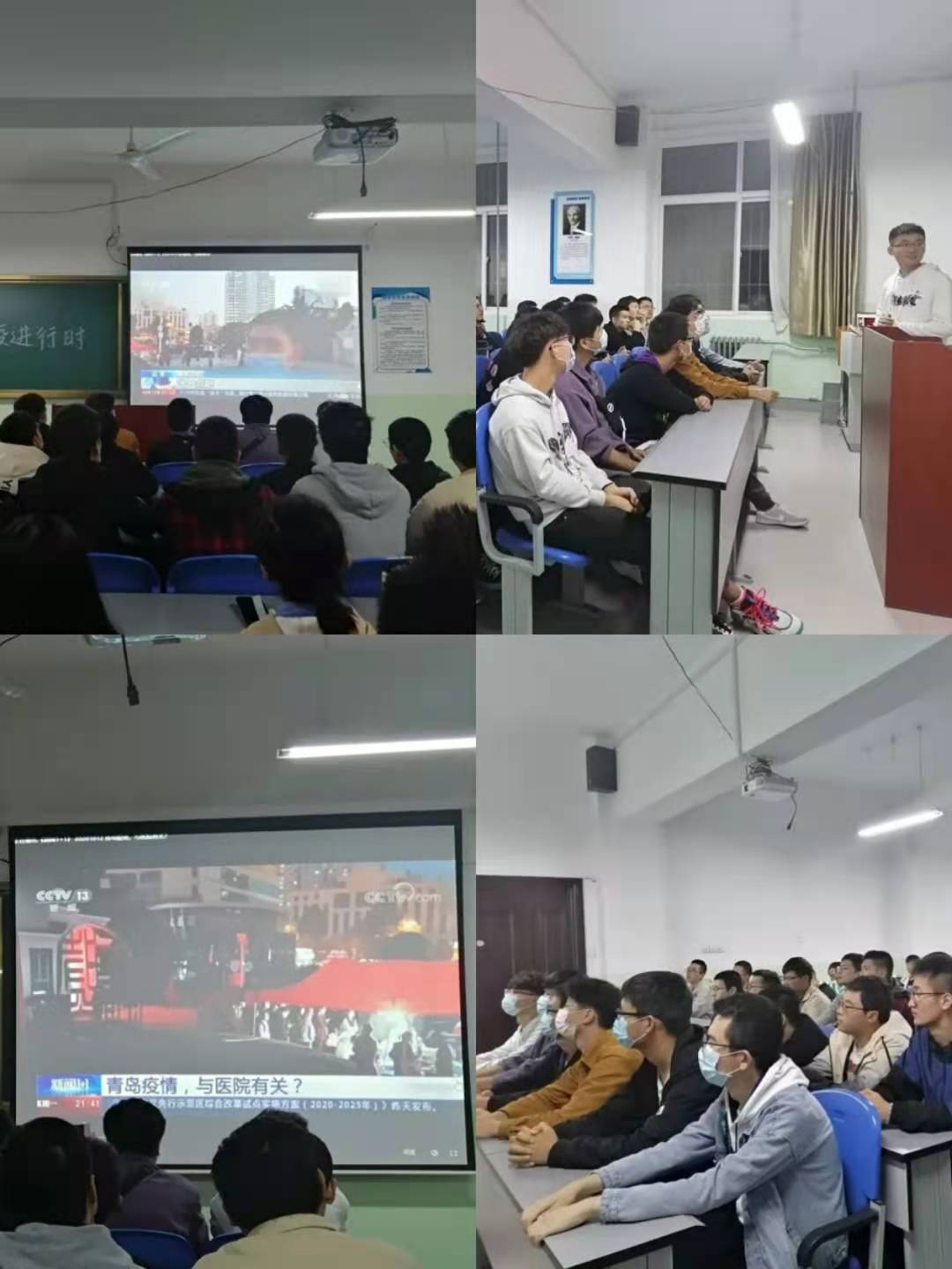 活动开始前,侯勇老师针对当时青岛疫情要求同学们通过本次活动,了解.线下防疫与节时防疫的区别,继续提高警惕,做好日常防护。活动开始后,赵雨晰同学结合官方新闻媒体《新闻1+1》,用事实提醒同学们加强防疫工作。赵雨晰同学通过“防疫知识知多少”、“我在防疫的日子”等章节,带领同学们更加深层次的了解防疫知识和保护自己的相关举措。并且通过活动分享,同学们通过分享自己的学习心得,增加了自己的防疫知识。活动后,侯老师对同学们提出了以下要求:1.注意个人卫生,熟练运用七步洗手法,外出注意个人防护;2.端正态度,对于疫情防护不可存在侥幸心理;3.每天按时打卡,及时上报个人身体情况,共同营造良好教学环境。并且希望同学们在特殊时期保护好自己积极配合公司卫生工作,营造舒适安全的校园环境。