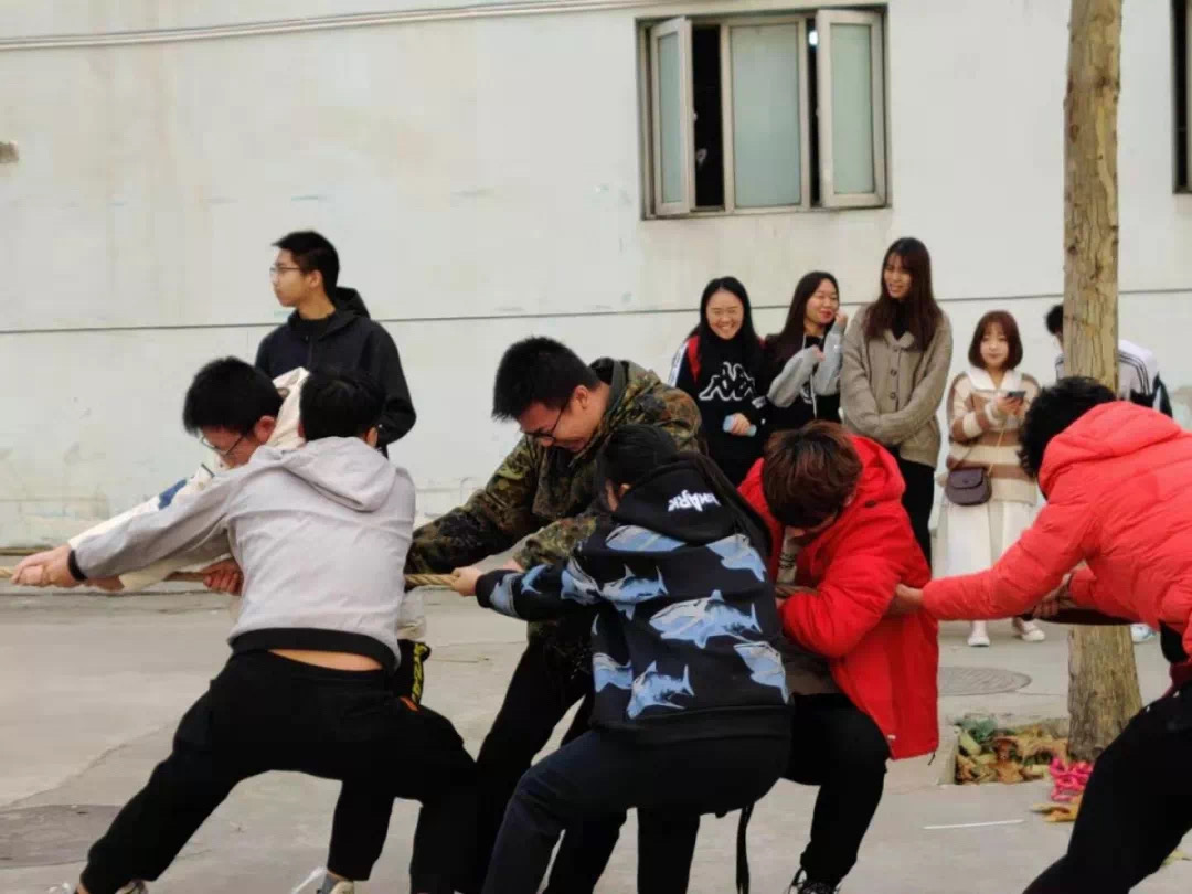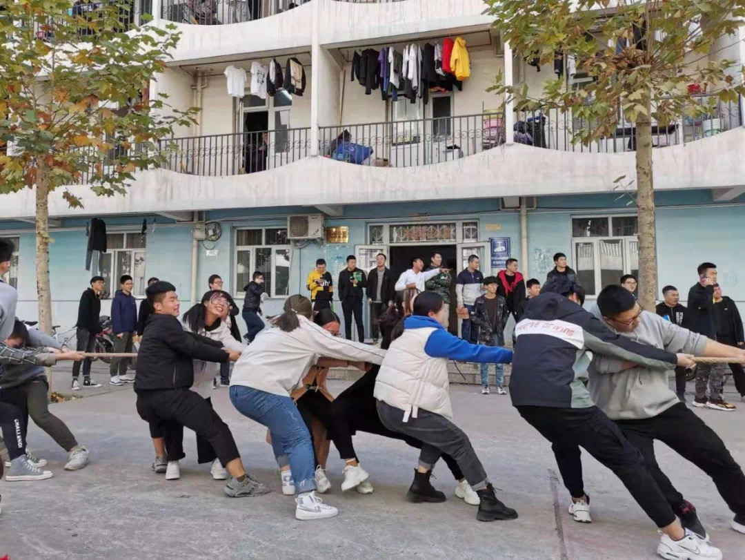 11月21号,由必一运动生活部和体育部共同主办的主题为“积极向上、团结奋进、运动健康 ”的拔河比赛在男生宿舍一号楼下展开。