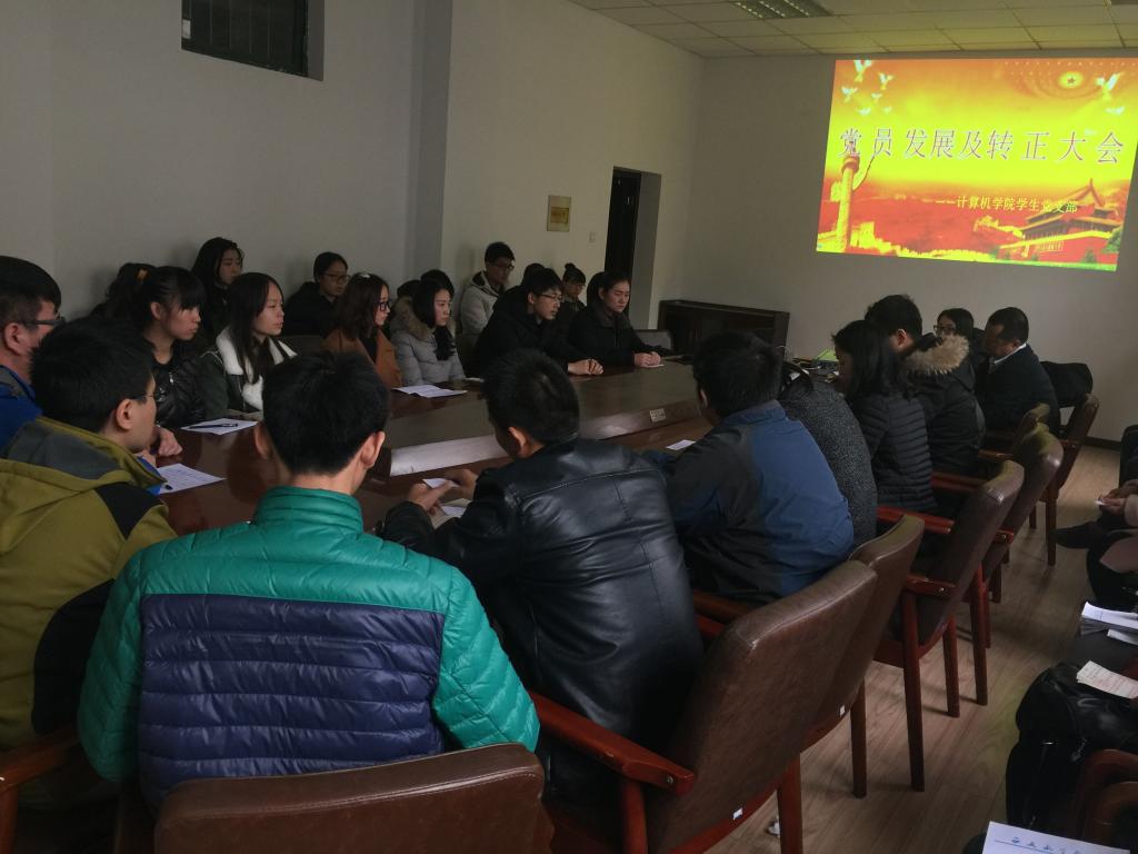 会议中,四位预备党员和六位发展对象依次就自己一年来的表现和思想状态做以汇报,表示会时刻与党中央保持一致,拥护党的纲领,遵守党的章程,履行党员义务,执行党的决定,对党忠诚。随后培养人分别介绍了发展对象一年来的表现,支部通报了这一年的考核结果,经党支部大会讨论,投票表决,六位发展对象均全票通过,光荣地发展成为中国共产党预备党员,四位预备党员按期转为正式党员。