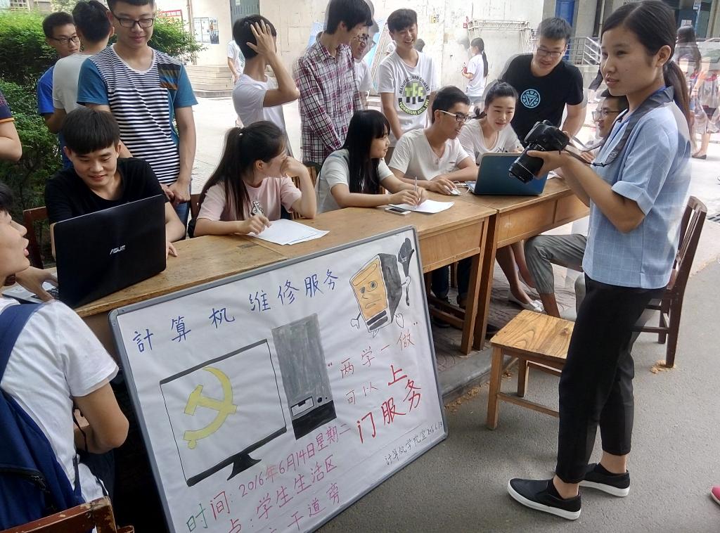 6月14日,公司员工党支部组织53名预备党员和积极分子开展计算机服务站活动,主要是针对全校师生计算机方面的问题进行解答和维修。