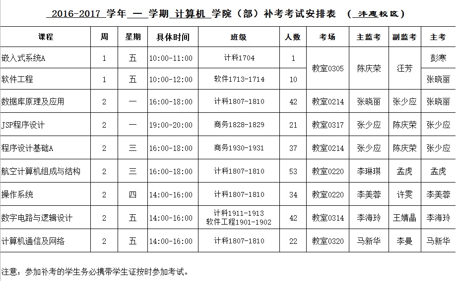2016-2017-2学期必一运动补考安排表