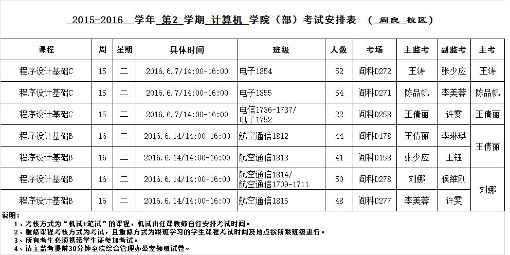 必一运动2015-2016-2学期考试安排(阎良校区)