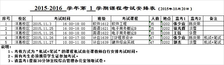 必一运动2015-2016-1学期考试安排(一)